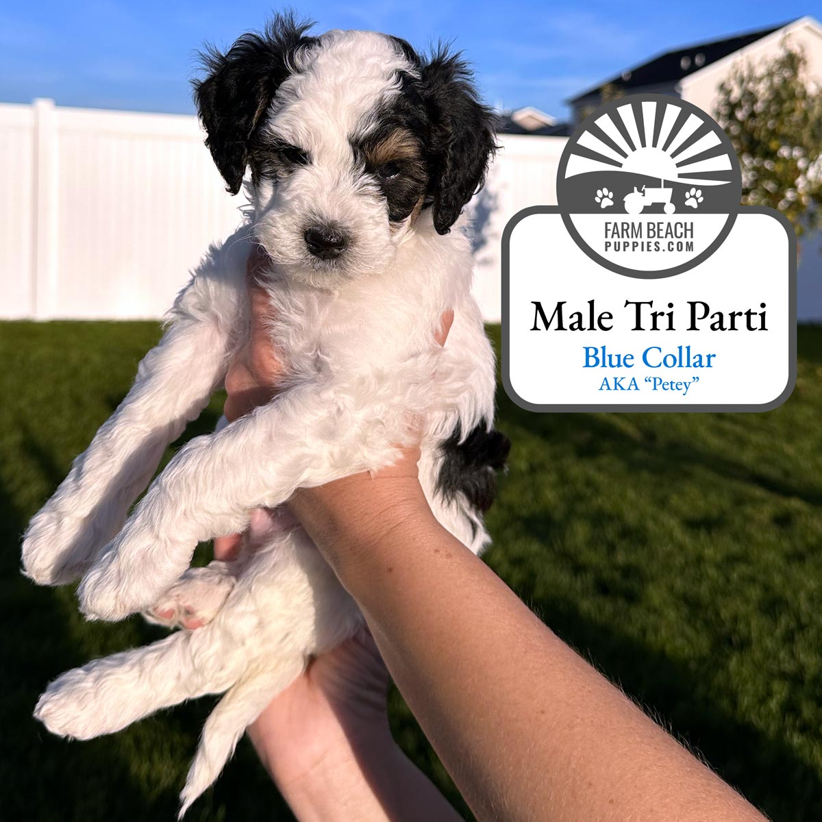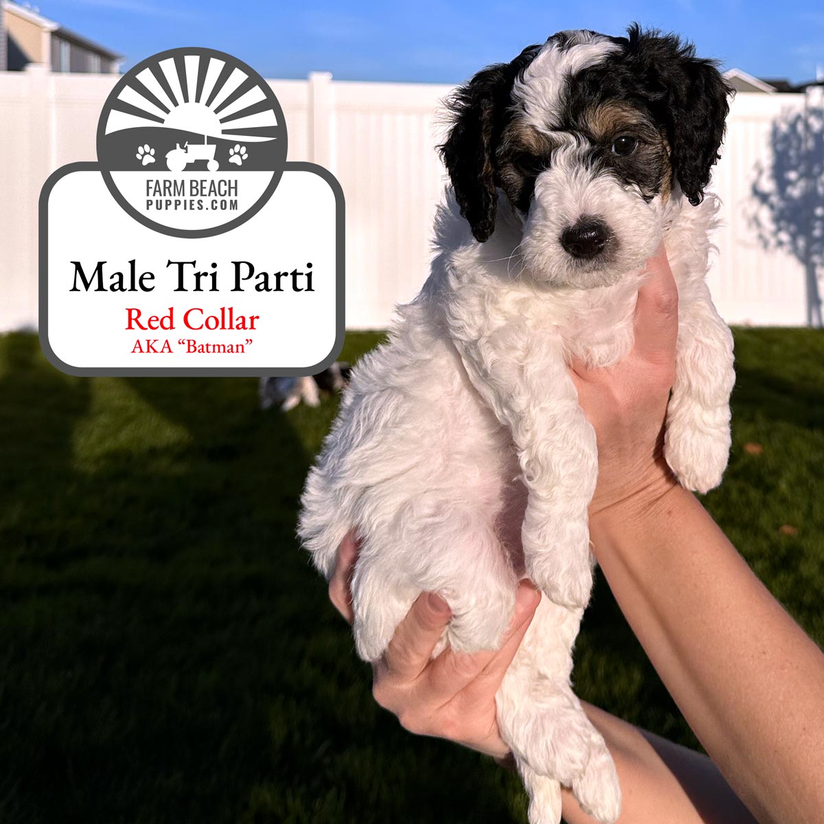Honey, the proud mom, is a 28 Lb multi-generational Mini Merle Bernedoodle. Milo, the dashing dad, is a 20 Lb multi-generational Tri-Parti Micro Bernedoodle. Both parents are fully furnished with a Super Soft Hypoallergenic dog fur coat and have been genetically tested and cleared of all diseases.